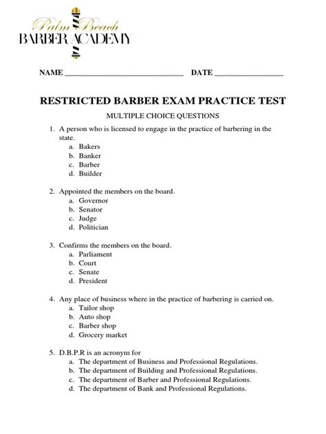 Download Practice Test For Restricted Barbers In Florida PDF Open Library